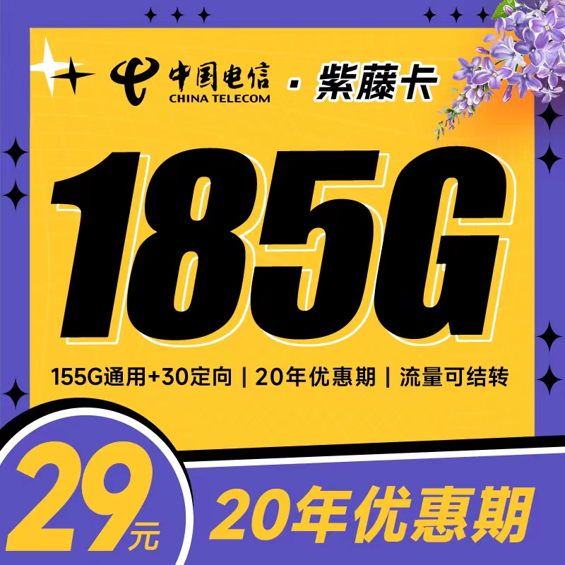 电信紫藤卡29元185G支持结转
