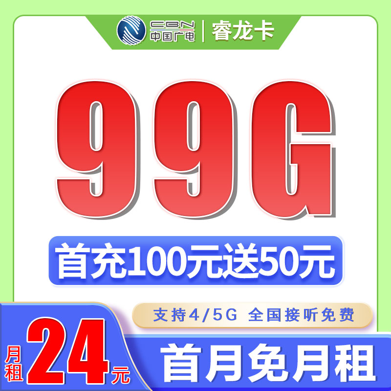 广电睿龙卡24元99G通用流量(流量支持结转)