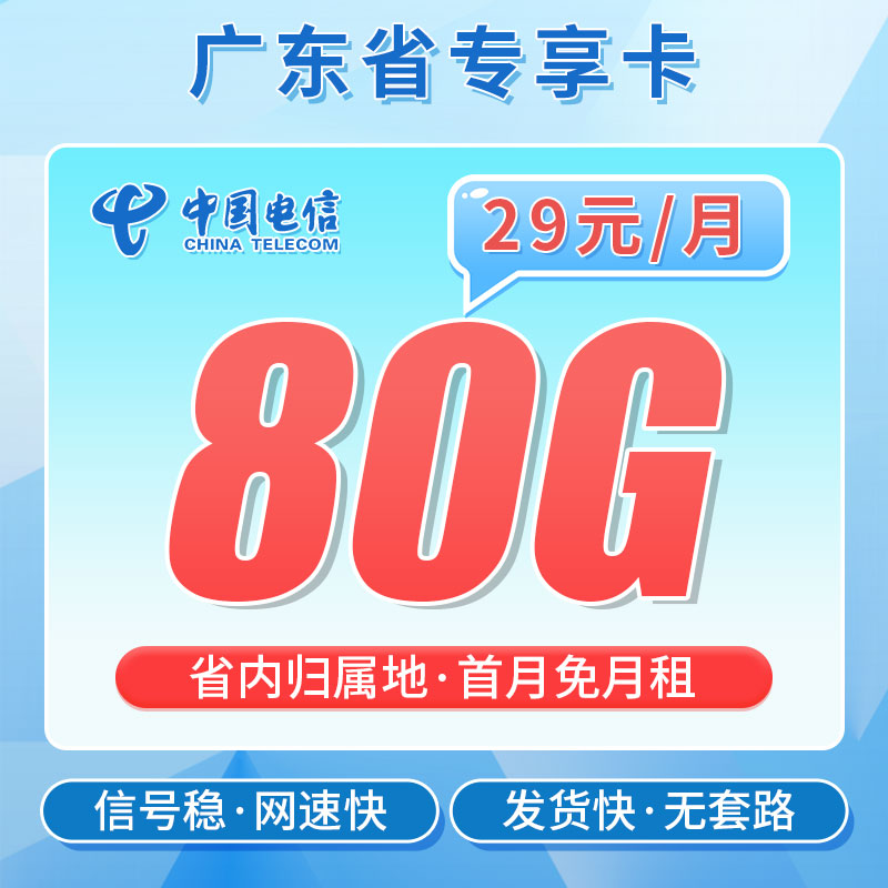 电信地虎卡29元80G归属地:广东不发地区:只发广东备注:-配送方式:顺丰/京东激活方式:自助/上门首充渠道:任意渠道办理年龄:18-60岁违停复机:根据短信操作套餐合约:无合约套餐构成:首月免费体验,第二个月开始29元80G(50G定向+30G定向),赠送的50G通用流量有效期24个月;到期根据政策续约注销方式:支持异地注销、当地营业厅注销、中国电信APP线上注销