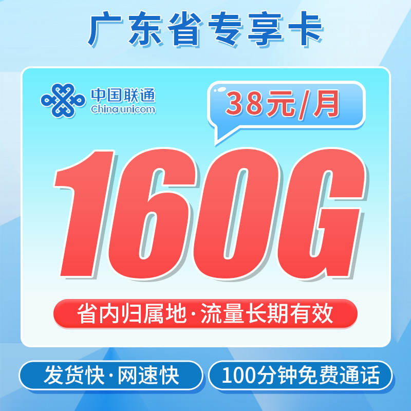 联通粤茫卡38元160G+100分钟归属地:广东不发地区:只发广东备注:-配送方式:人工上门激活方式:上门激活首充渠道:任意渠道办理年龄:19-60岁违停复机:-套餐合约:无合约套餐构成:首月全价全量直接扣除38元(月底到货建议月初激活)这里以参加首充100元为例:第1-24个月38元/月,第25个月恢复63元/月,45G全国通用+85G省内通用+30G省内定向+100分钟通话长期有效注销方式:支持异地注销、当地营业厅注销、中国联通APP线上注销